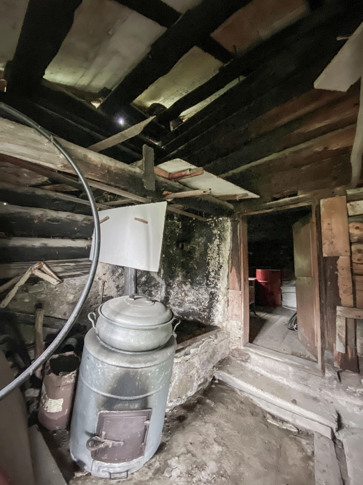 Im 2020 war das Maiensäss am zusammenbrechen (siehe Bilder unten). Erinnerungen an alte Zeiten? die Feuerstelle, ein nicht mehr zu rettender Holzofen, ein grosser Milchtank, der jetzt bei einem Bauern als Kuhtränke dient, viel Geschirr, Holz, Altholz, und noch älteres Holz und ... Holz.